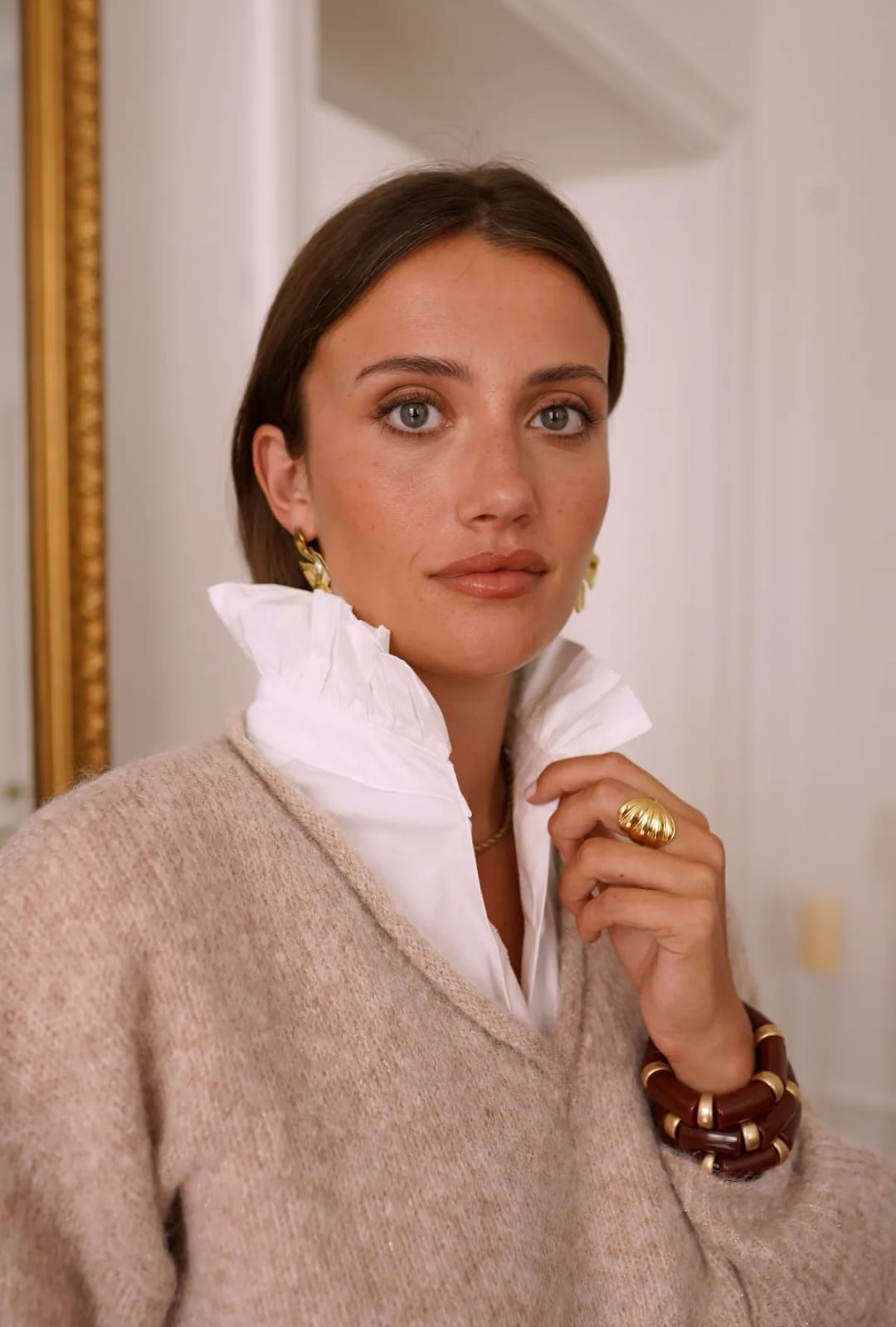 The white Ruffle Neck Blouse is a key piece in any wardrobe. White is the Pantone colour of the year and an absolute classic. This shirt is fresh and unique, a perfect nod to Spring.